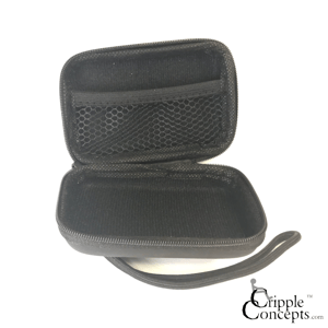 The plug is 2 3/8" long and 1" diameter. The housing is constructed of aluminum, 3d printed ABS plastic, and a silicone ring with "CRIPPLE CONCEPTS" embossed on it for added grip.